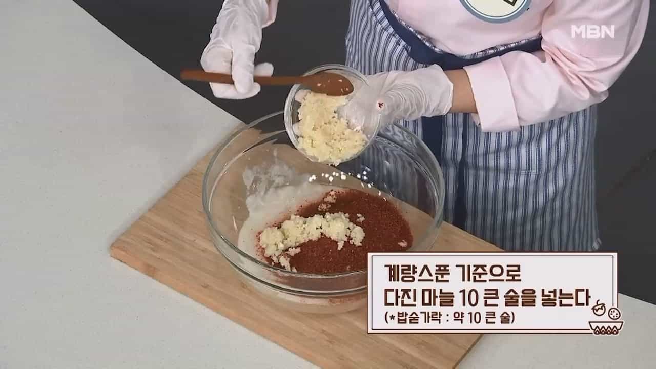 8. 계량스푼 기준으로 다진 마늘 10큰술을 넣어줍니다. (밥숟가락 약 10큰술)
