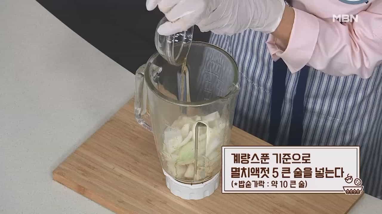 4. 계량스푼 기준으로 멸치액젓 5큰술을 넣어줍니다. (밥숟가락 약 10큰술)