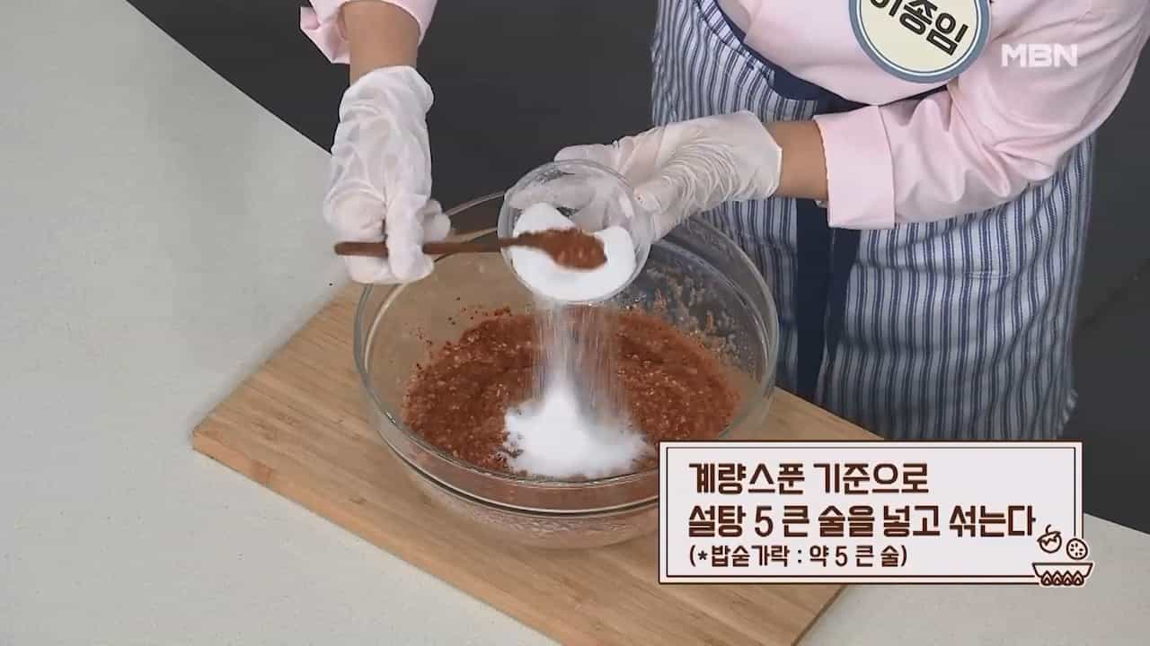 11. 계량스푼 기준으로 설탕 5큰술을 넣고 섞어줍니다. (밥숟가락 약 5큰술)
