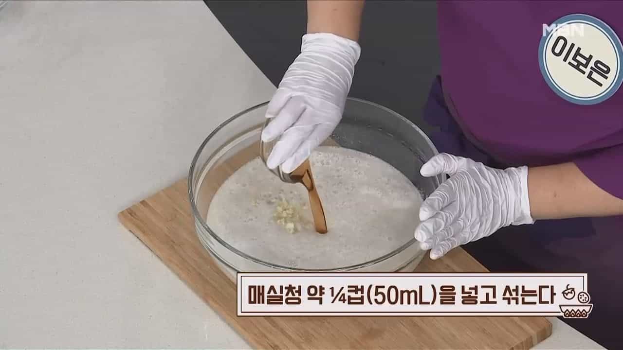 13. 매실청 약 1/4컵(50mL)을 넣고 잘 섞어줍니다.