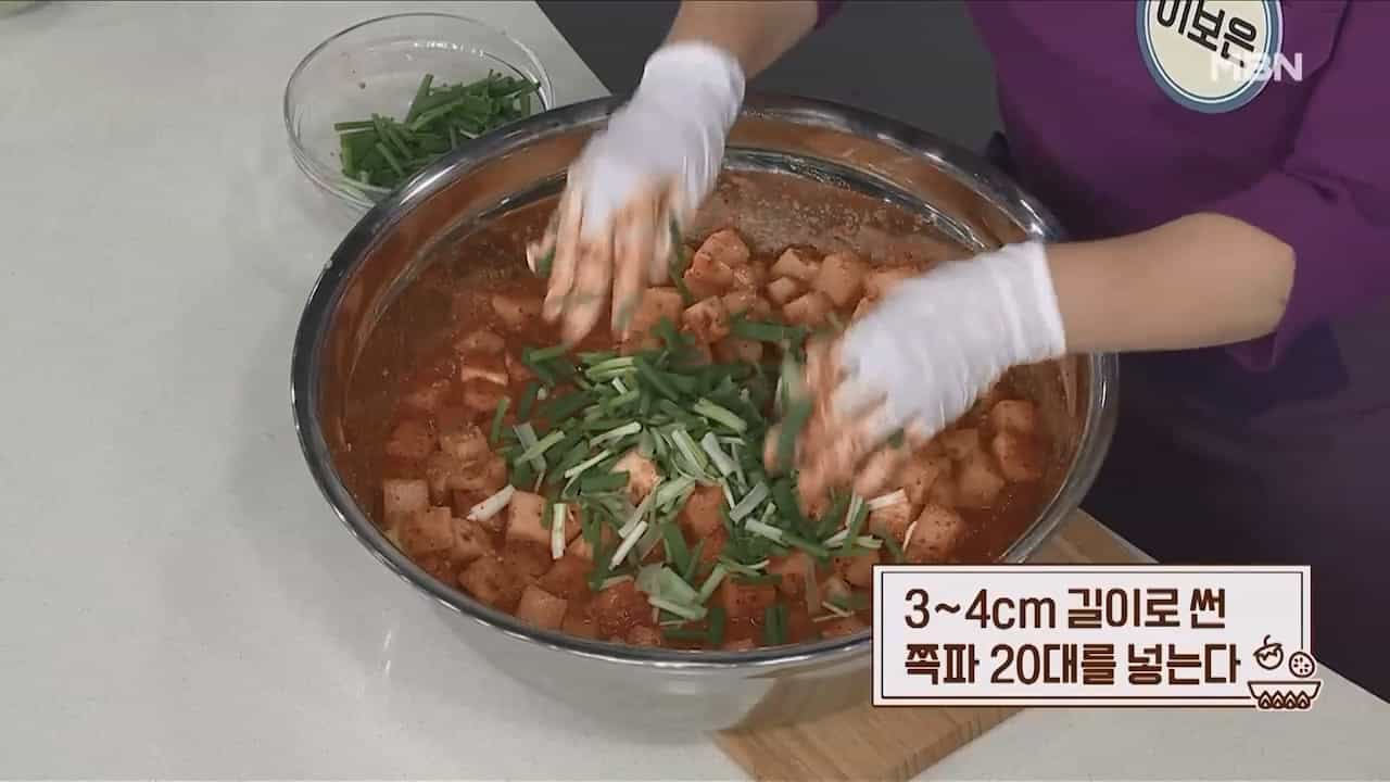 17. 3~4cm 길이로 썬 쪽파 20대를 넣어줍니다.