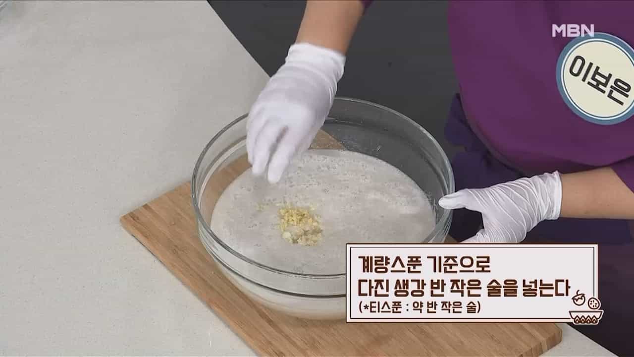 11. 계량스푼 기준으로 다진 생강 반 작은술을 넣습니다. (티스푼 약 반작은술)