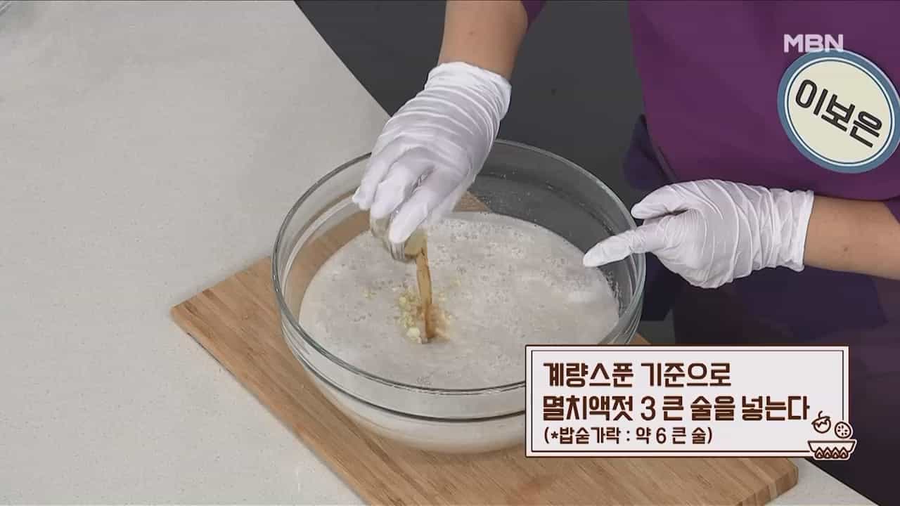 12. 계량스푼 기준으로 멸치액젓 3큰술을 넣습니다. (밥숟가락 약 6큰술)
