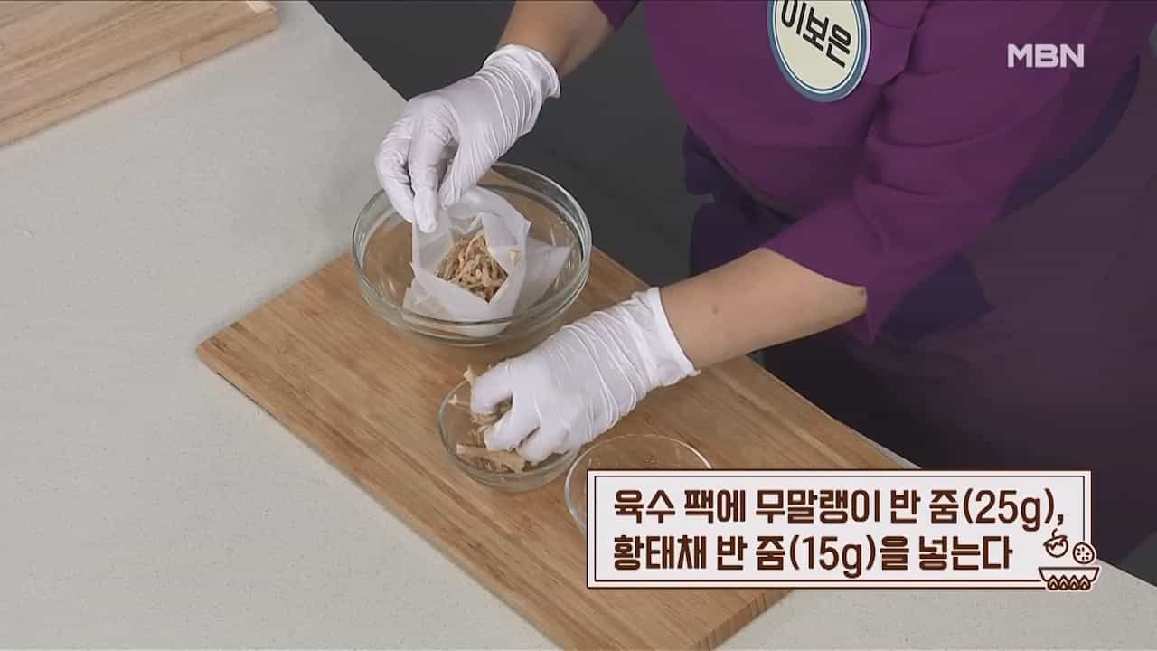 4. 육수 팩에 무말랭이 반줌(25g), 황태채 반줌 (15g)을 넣어줍니다.