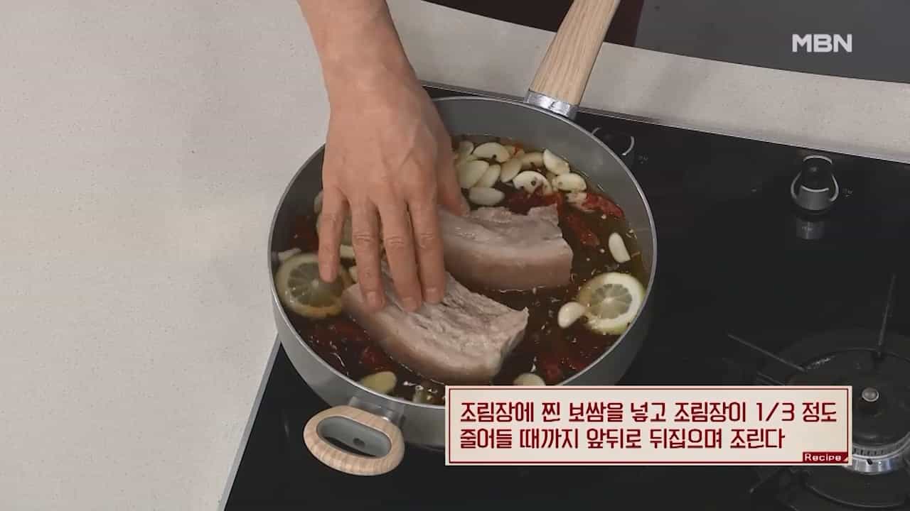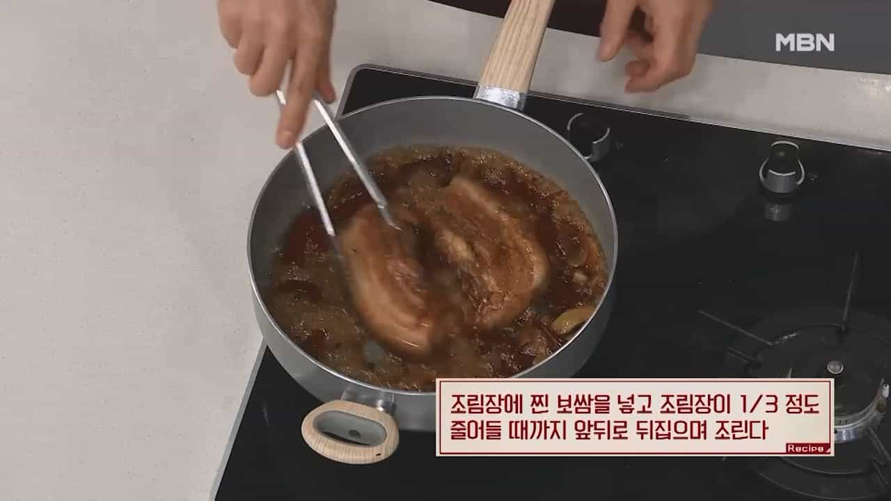 3. 조림장에 찐 보쌈을 넣고 조림장이 1/3정도 줄어들때까지 앞뒤로 뒤집으며 조려줍니다.