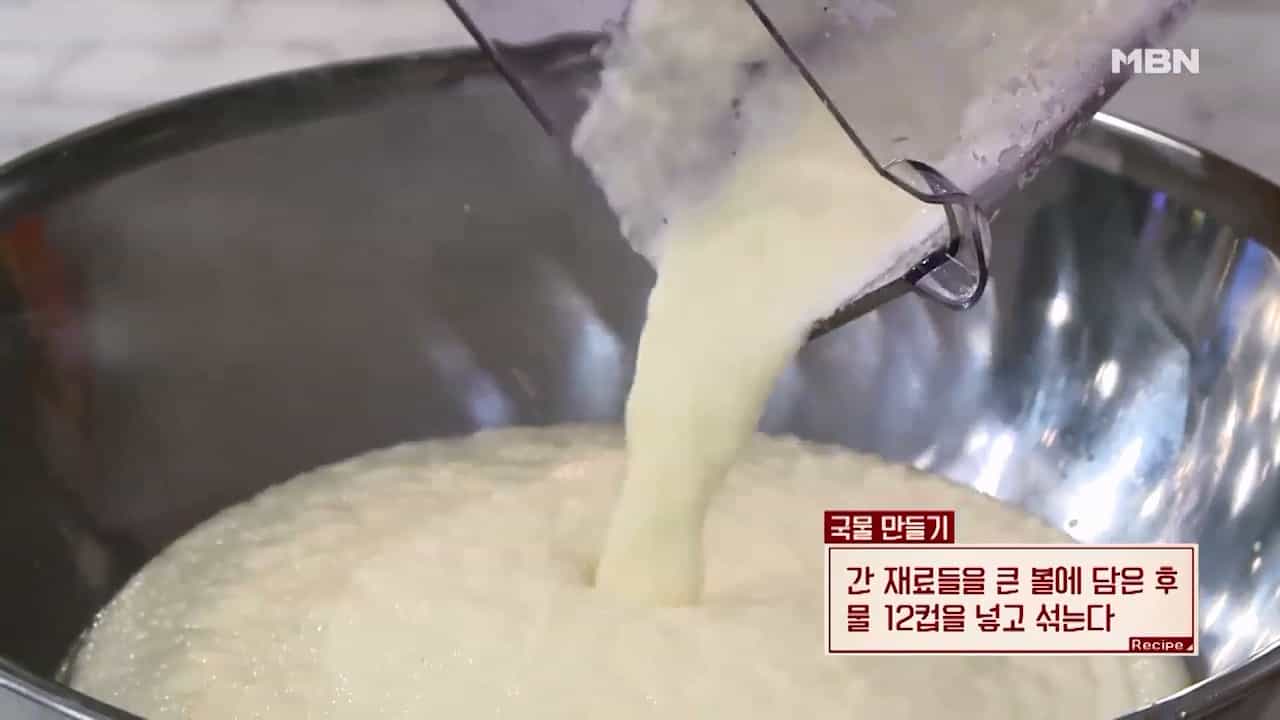 12. 간 재료들을 큰 볼에 담은 후 물 12컵을 넣고 잘 섞어줍니다.