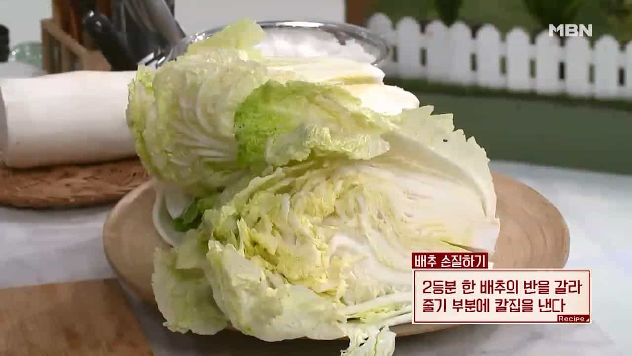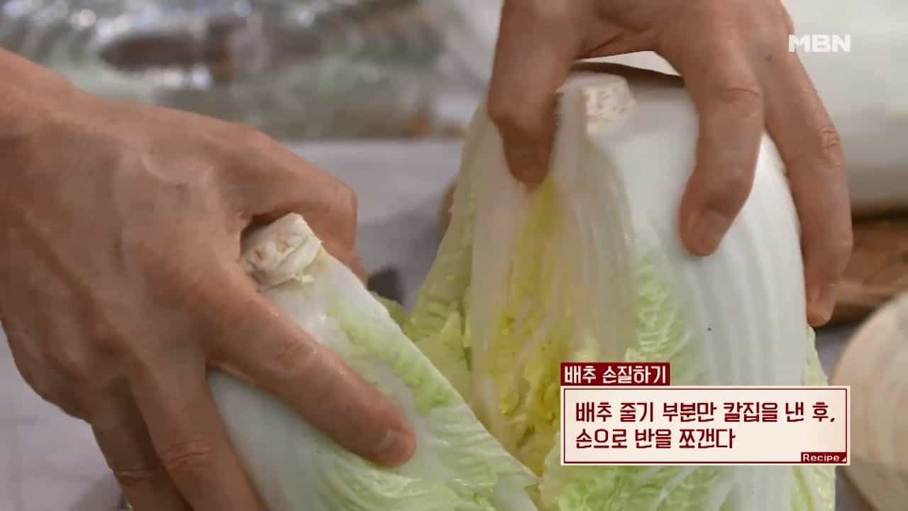 1. 배추 줄기 부분만 칼집을 낸 후 손으로 반을 쪼갭니다.
