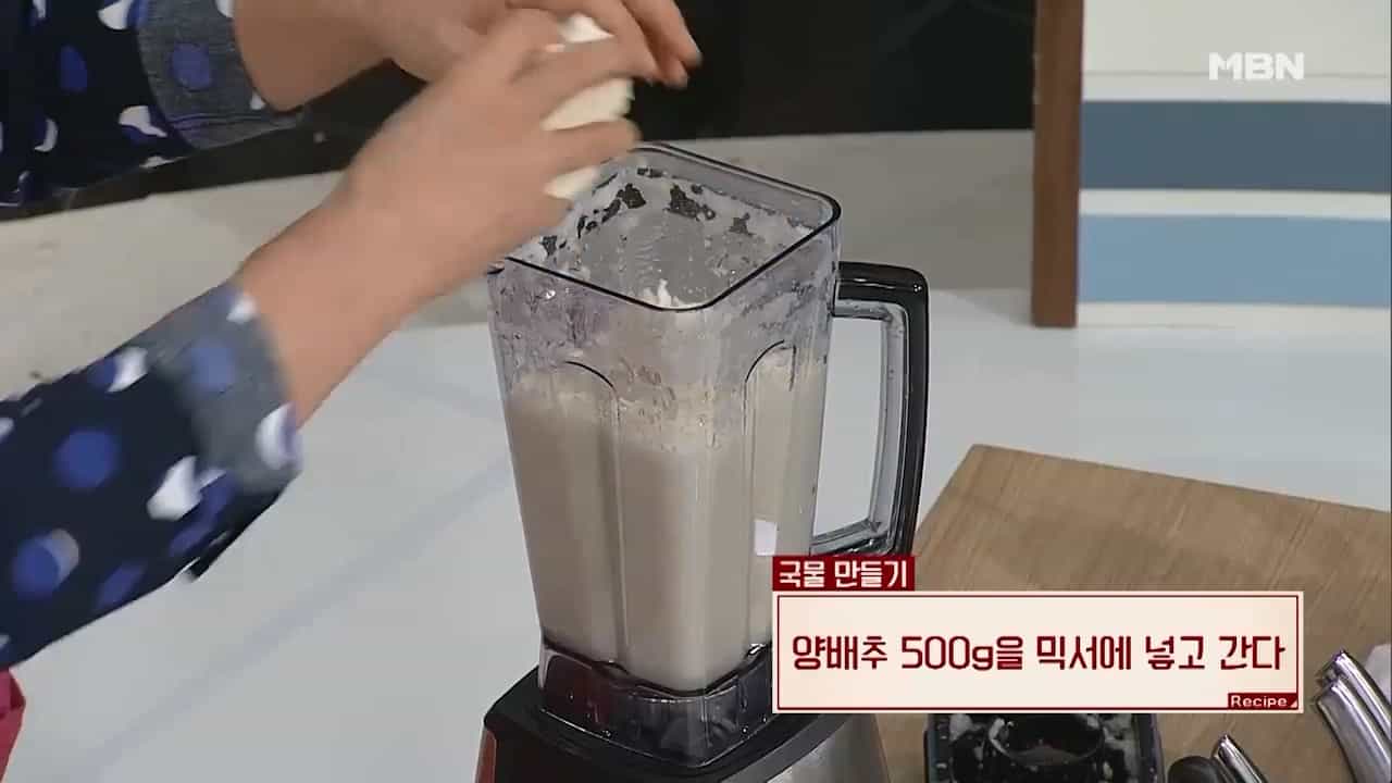 11. 양배추 500g을 믹서기에 넣고 갈아줍니다.