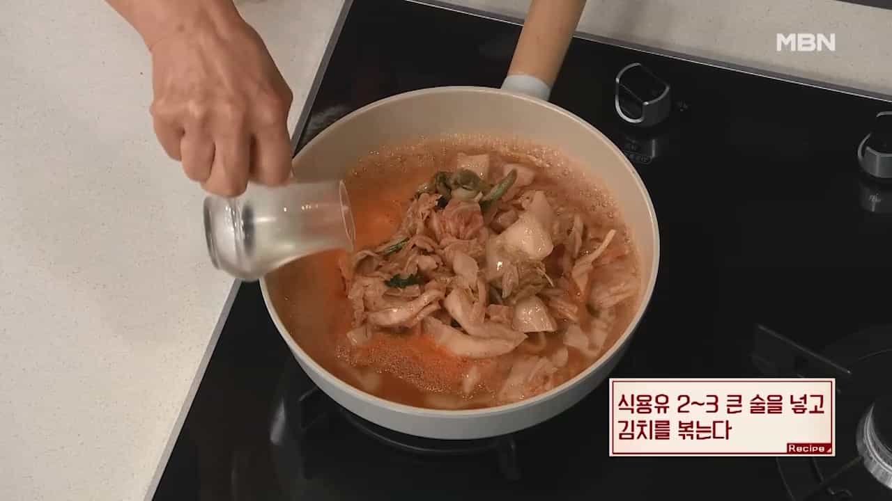 5. 식용유 2~3큰술을 넣고 김치를 볶아줍니다.