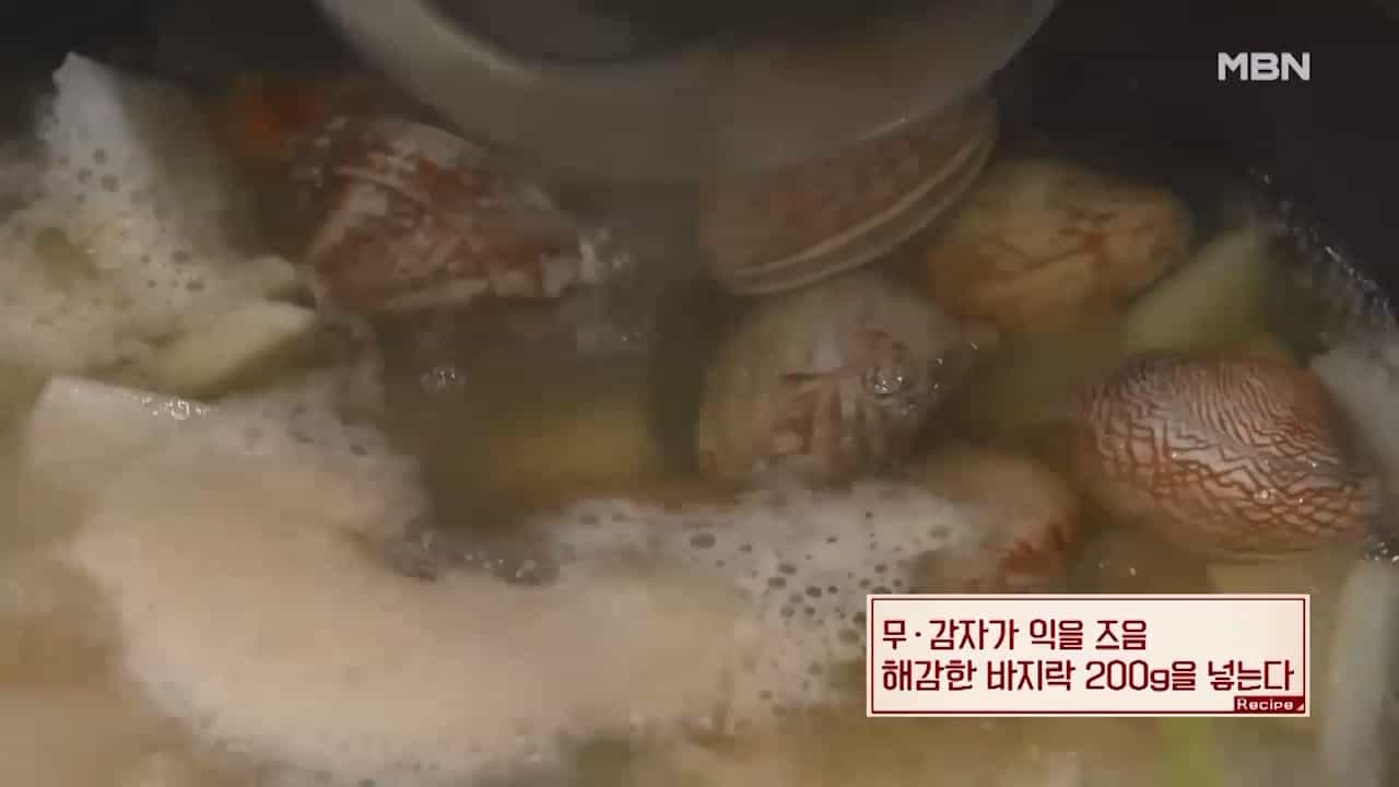 9. 무와 감자가 익을때쯤 해감한 바지락 200g을 넣습니다.