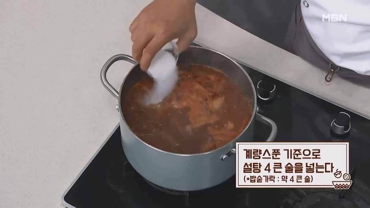 10. 계량스푼 기준으로 설탕 4큰술을 넣어줍니다. (밥숟가락 약 4큰술)