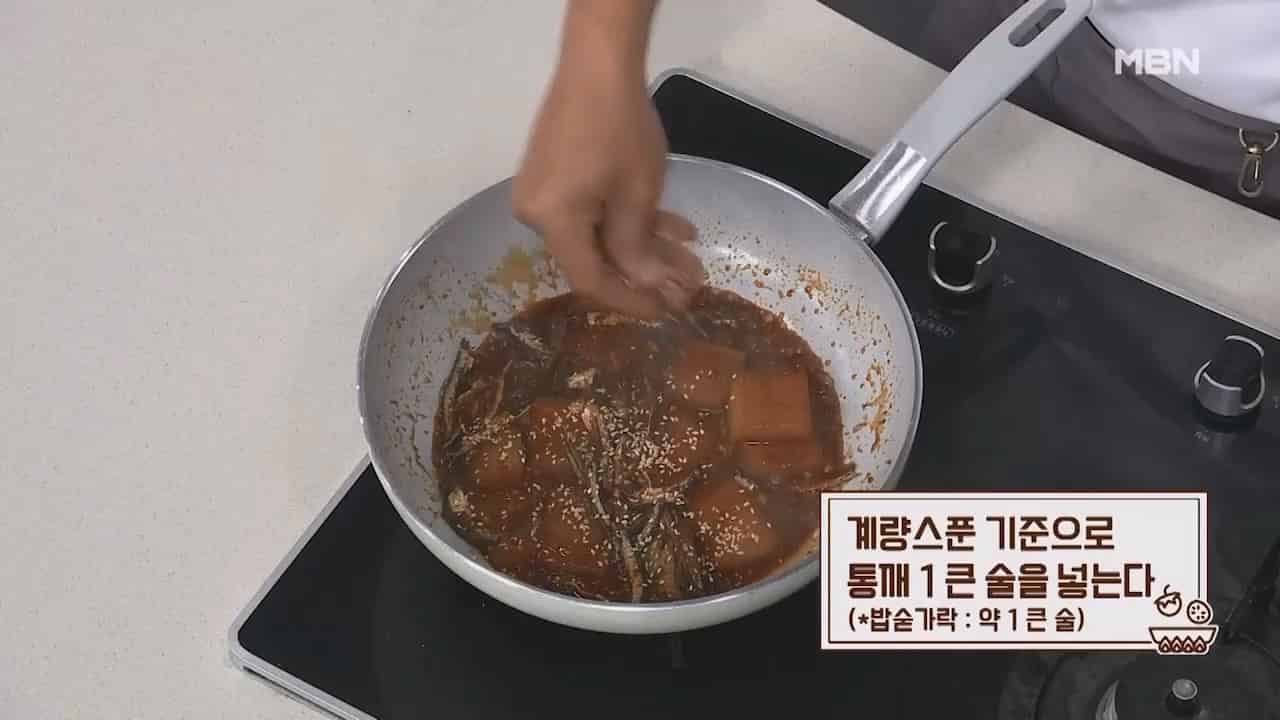 15. 계량스푼 기준으로 통깨 1큰술을 넣으면 맛있는 무조림이 완성됩니다. (밥숟가락 약 1큰술)