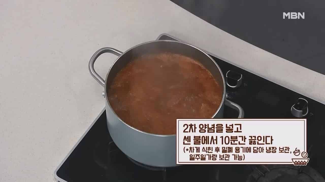 11. 2차 양념을 넣고 센불에서 10분간 끓이고 차게 식힌 후 밀폐 용기에 담아 냉장보관합니다. (냉장보관시 약 일주일 가량 보관 가능)