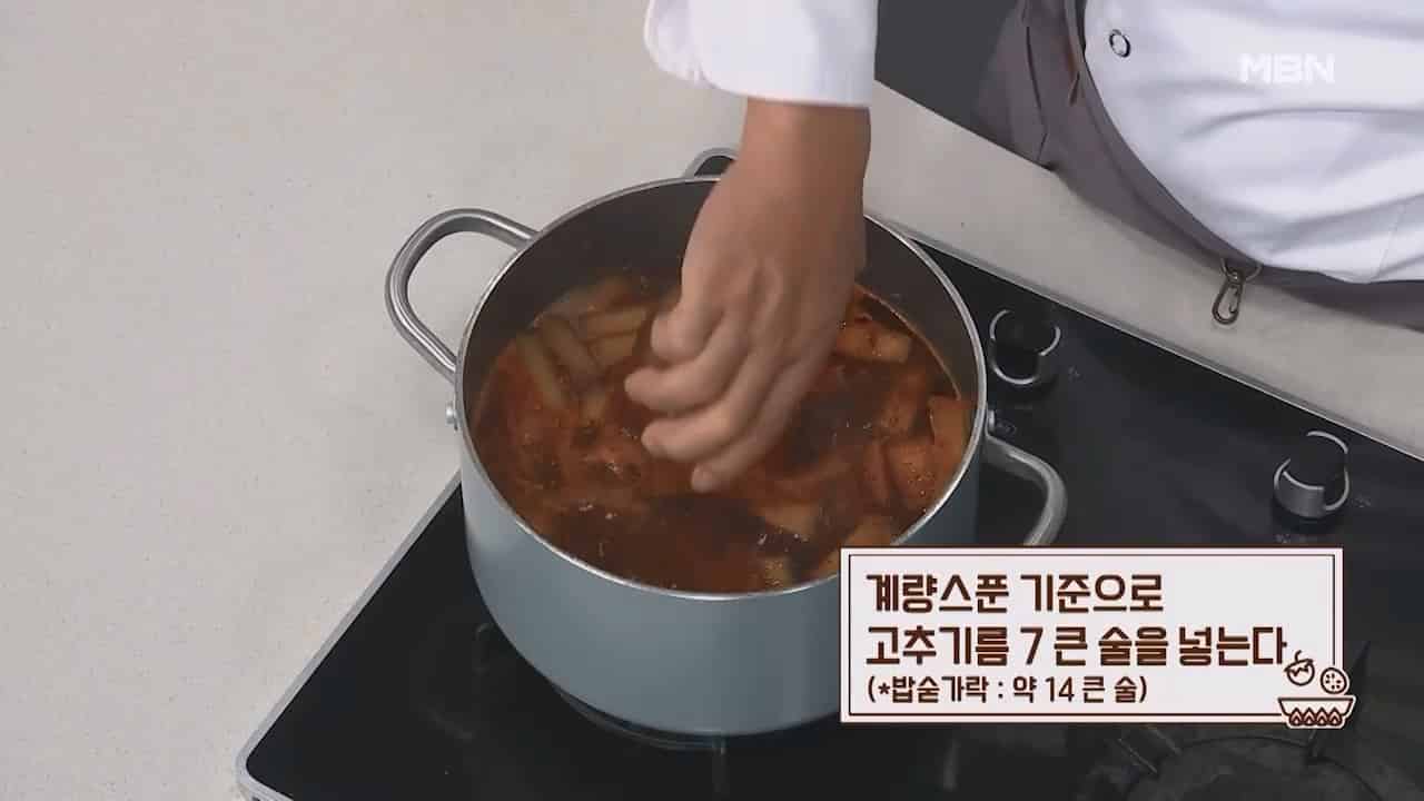 7. 계량스푼 기준으로 궃기름 7큰술을 넣습니다. (밥숟가락 약 14큰술)