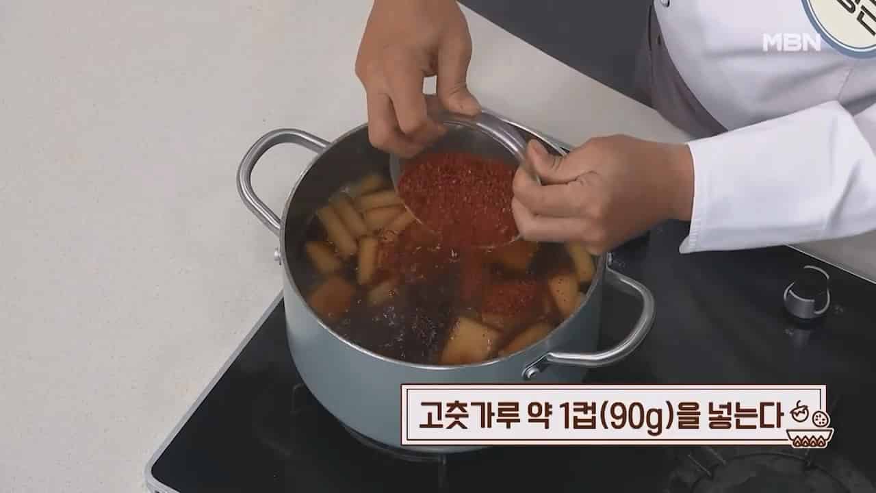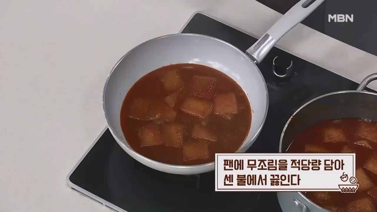 12. 팬에 무조림을 적당량 담아 센불에서 끓입니다.