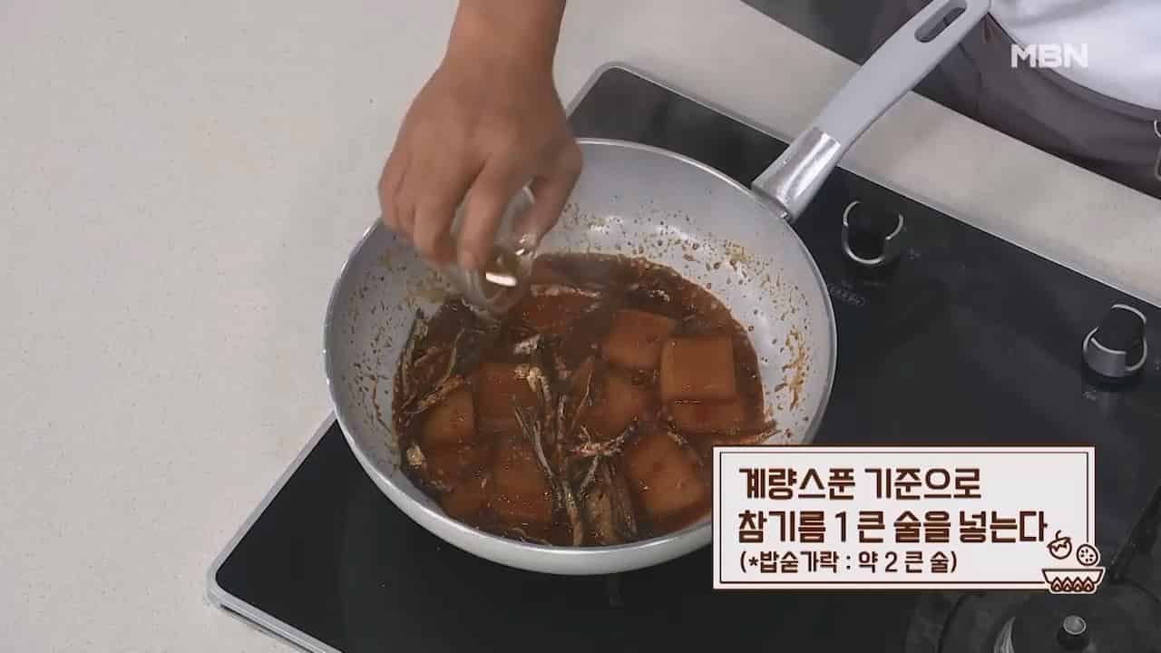 15. 계량스푼 기준으로 통깨 1큰술을 넣으면 맛있는 무조림이 완성됩니다. (밥숟가락 약 1큰술)