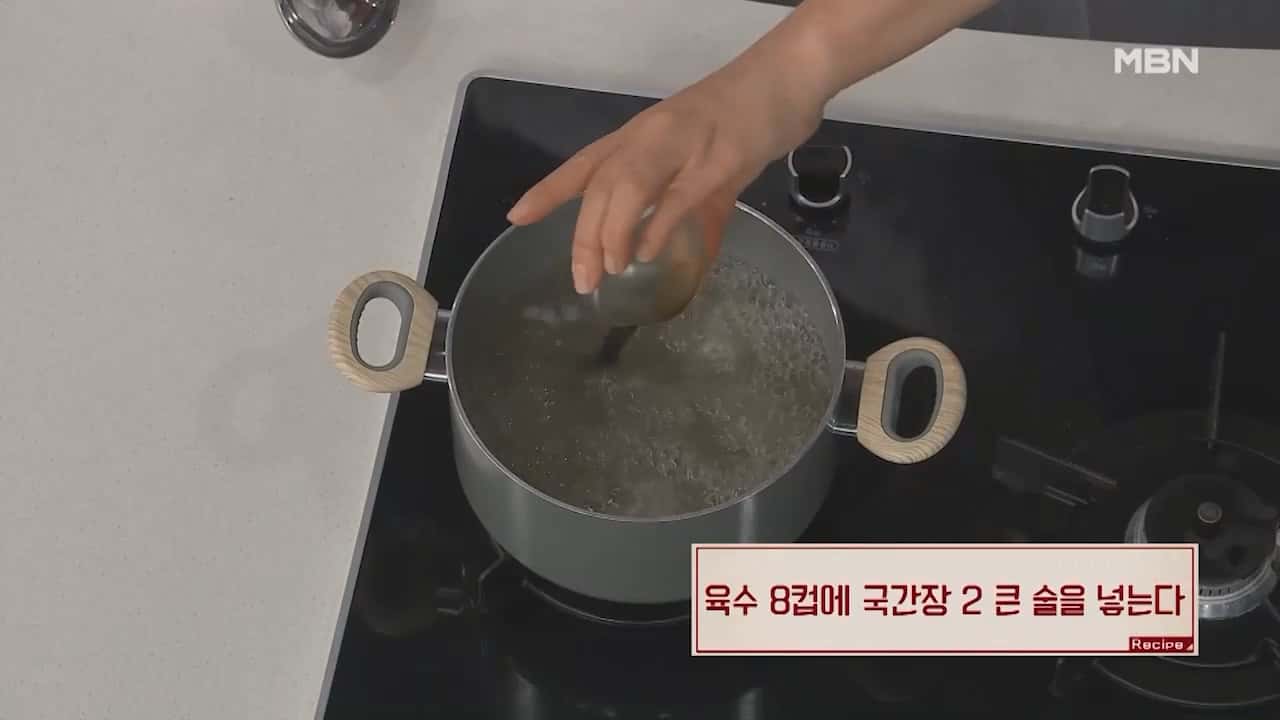 18. 육수 8컵에 국간장 2큰술을 넣어줍니다.