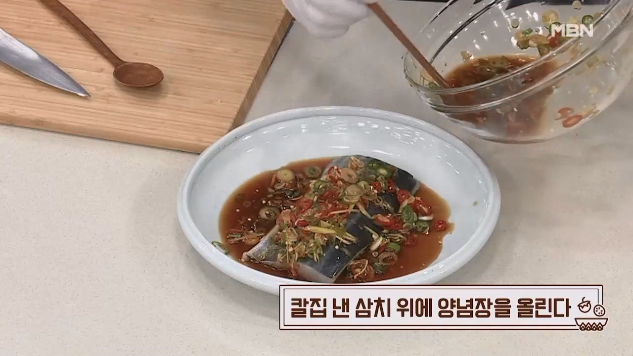 9. 칼집 낸 삼치위에 양념장을 올립니다.
