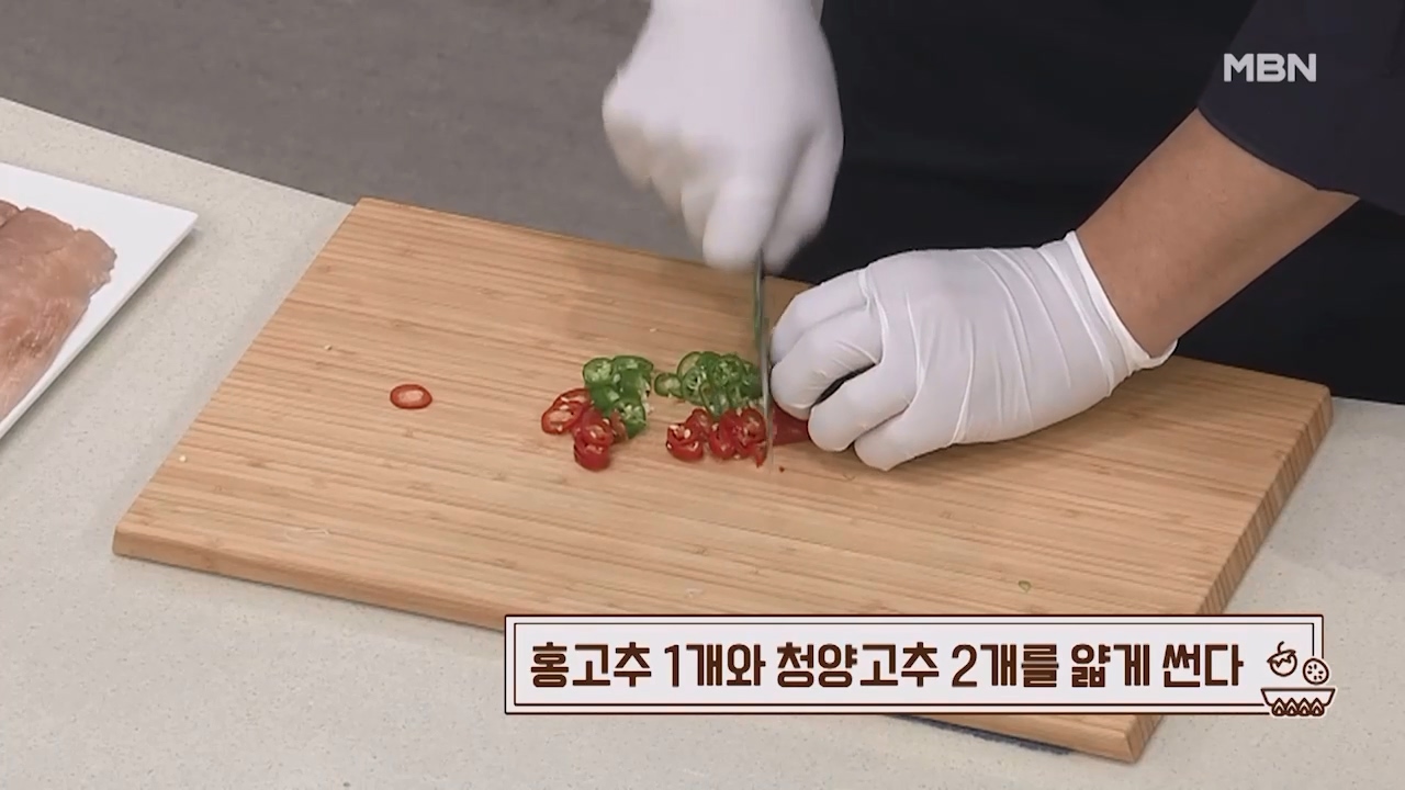 2. 홍고추 1개와 청양고추 2개를 얇게 썰어줍니다.