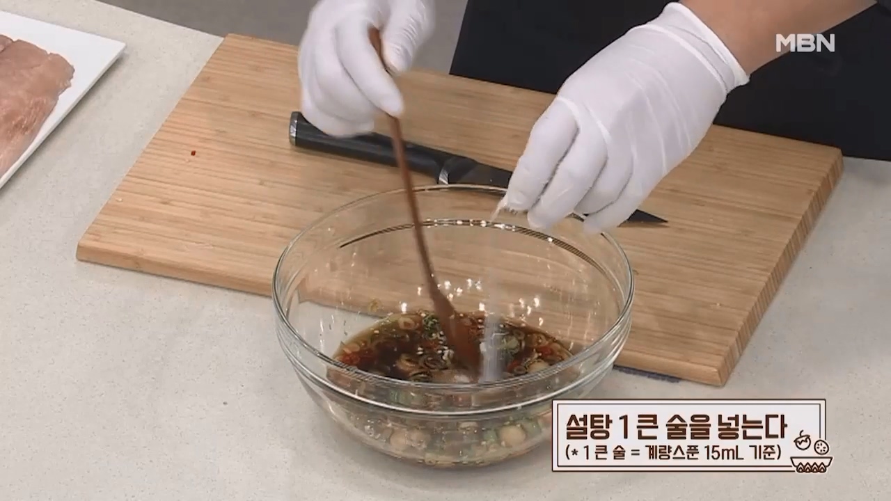 7. 설탕 1큰술을 넣어줍니다. (1큰술은 계량스푼 15mL 기준)