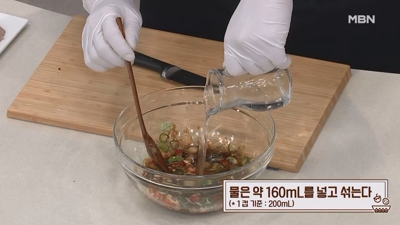 6. 물은 약 160mL를 넣고 섞어줍니다. (1컵 기준 : 200mL)