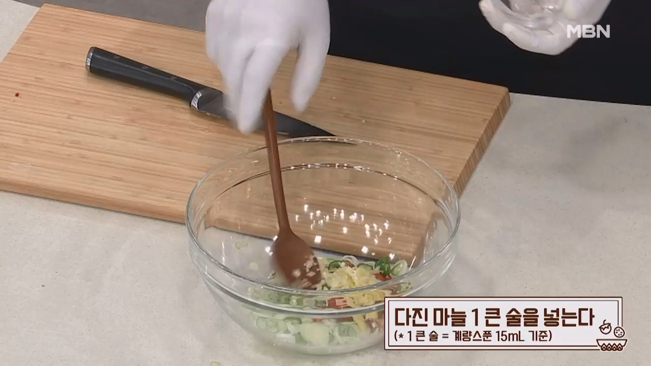 4. 다진마늘 1큰술을 넣어줍니다. (1큰술은 계량스푼 15mL 기준)