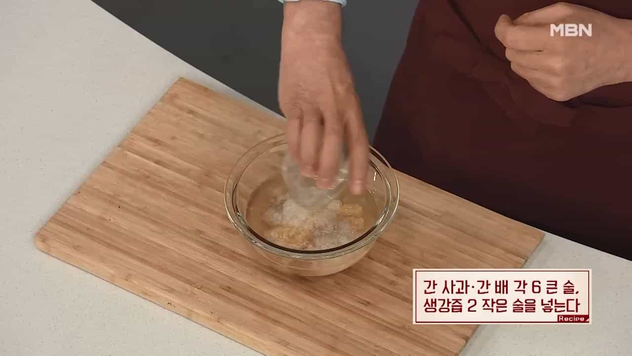 5. 간사과 6큰술, 간 배 6큰술, 생강즙 2작은술을 넣습니다.