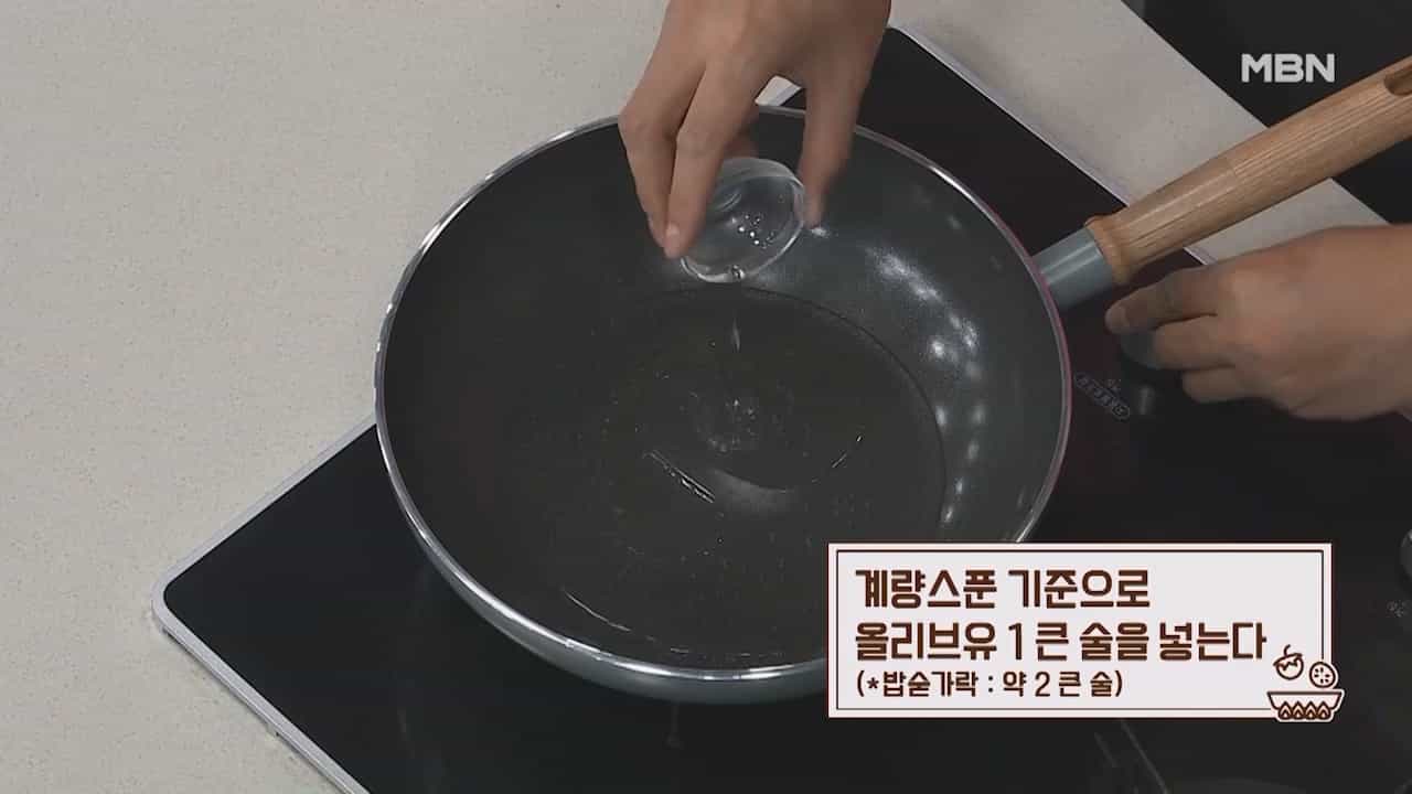 3. 계량스푼 기준으로 올리브유 1큰술을 넣습니다. (밥숟가락 약 2큰술)