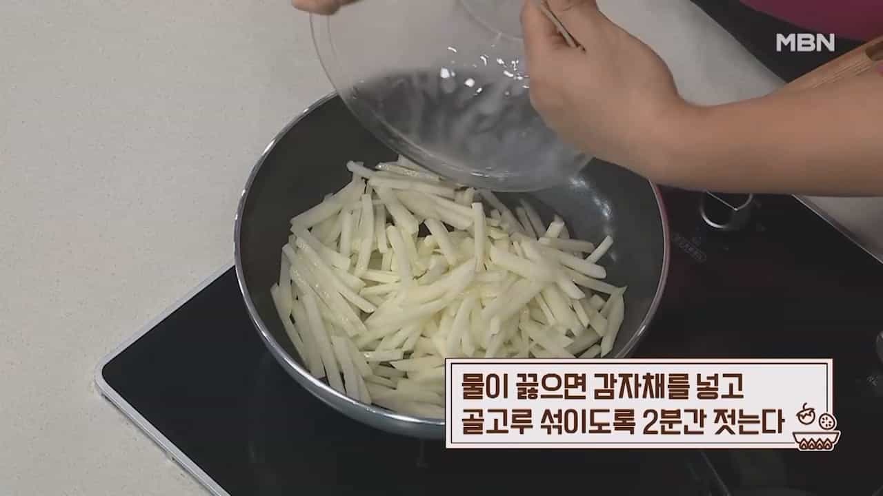 5. 골고루 섞은 감자채는 뚜껑을 덮고 3분 더 삶아줍니다.