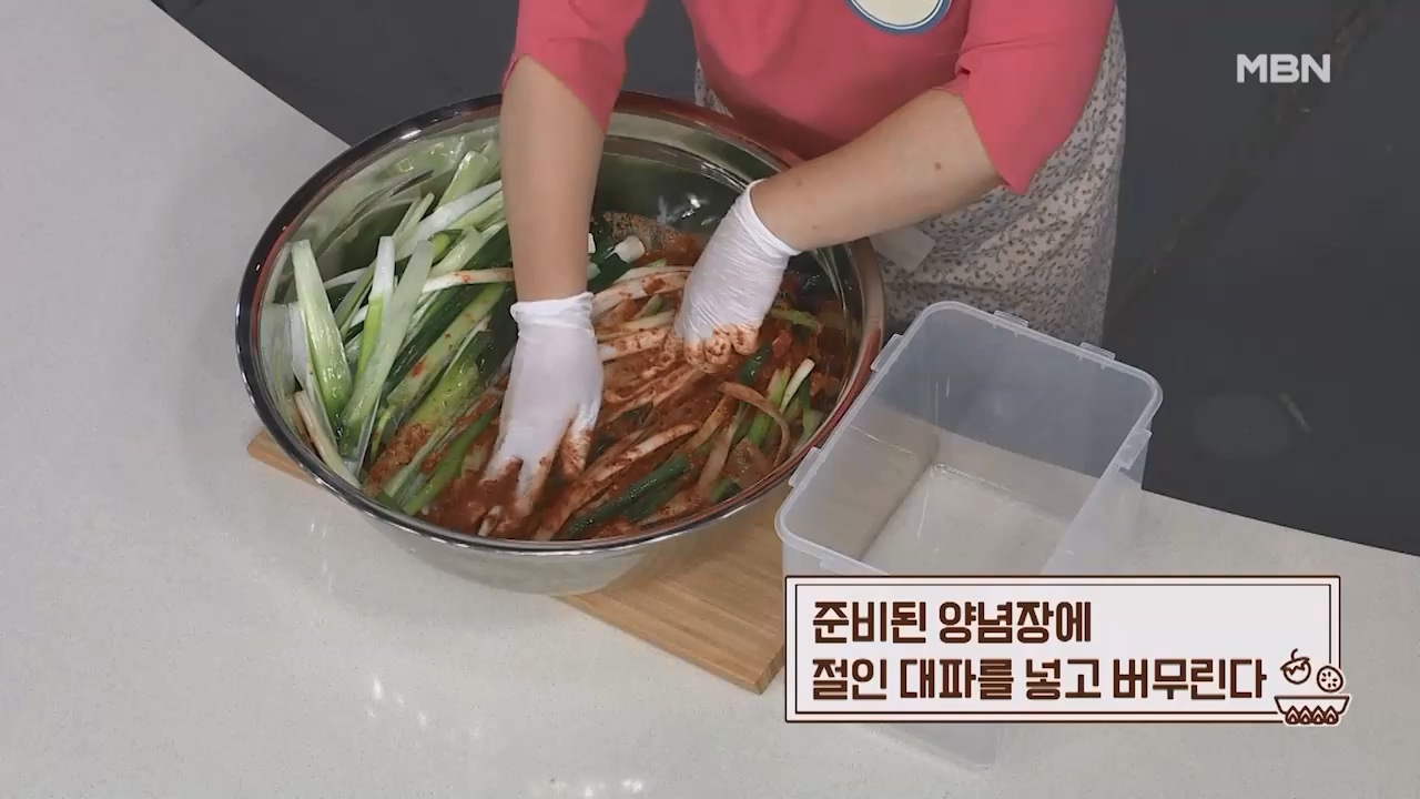 11. 준비된 양념장에 절인 대파를 넣고 버무립니다.