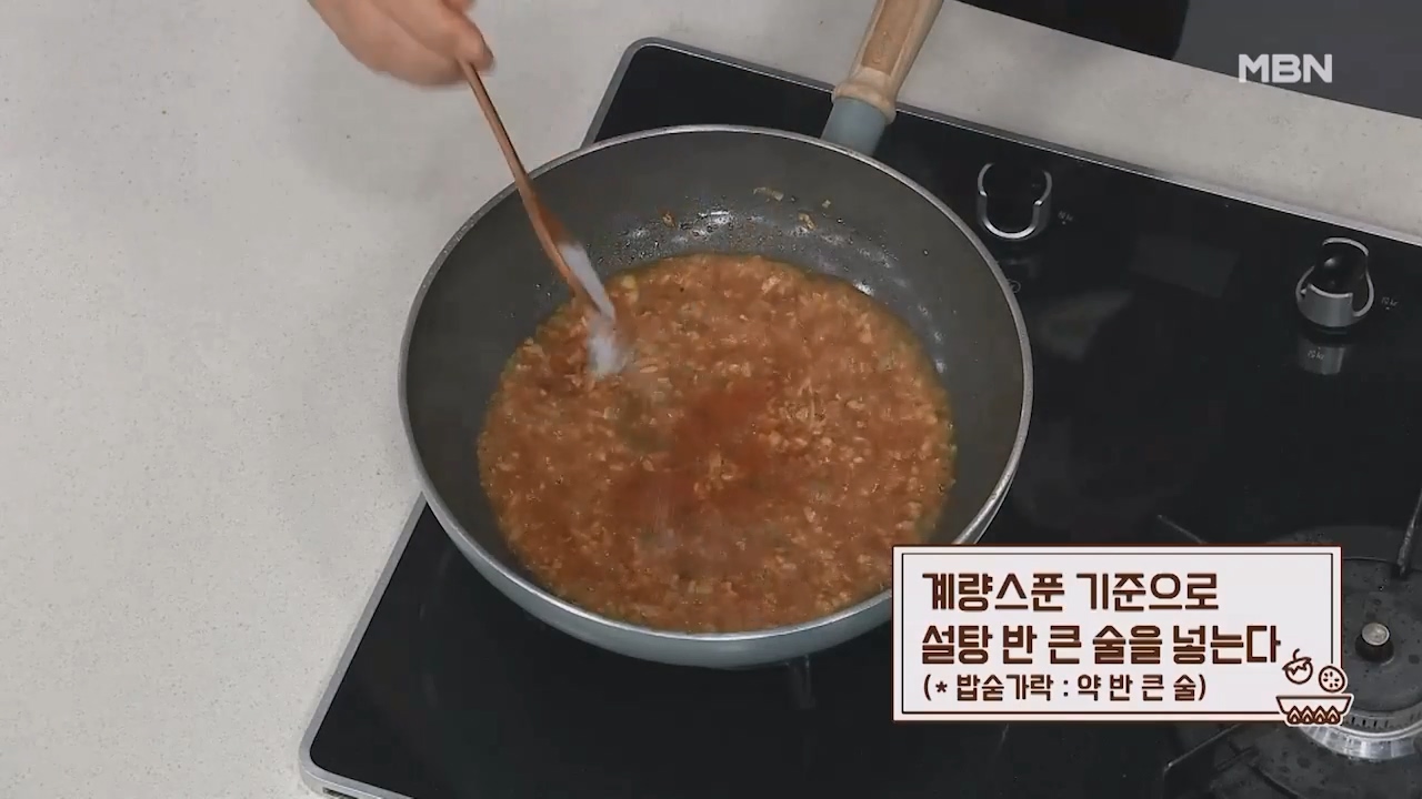 13. 계량스푼 기준으로 설탕 반큰술을 넣습니다. (밥숟가락 약 반큰술)