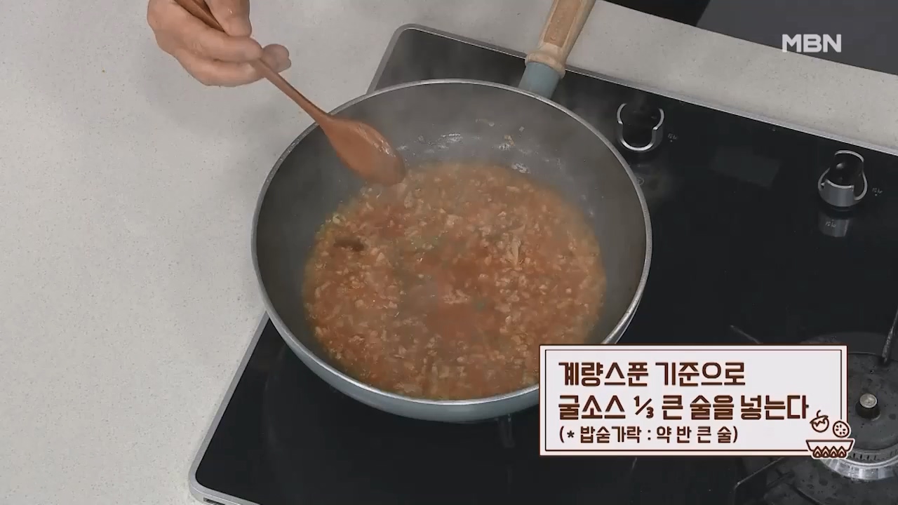 12. 계량스푼 기준으로 굴소스 1/3큰술을 넣습니다. (밥숟가락 약 반큰술)
