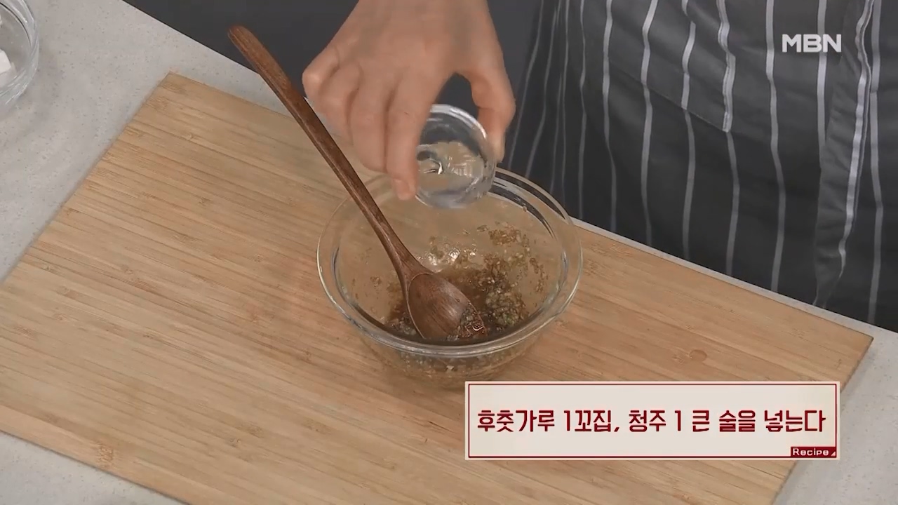 4. 후춧가루 1꼬집, 청주 1큰술을 넣고 잘 섞어줍니다.