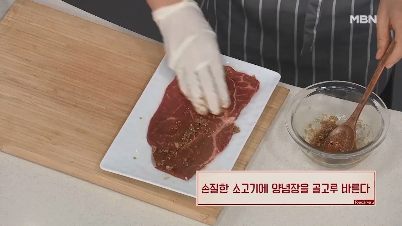 5. 손질한 소고기에 양념장을 골고루 발라줍니다.