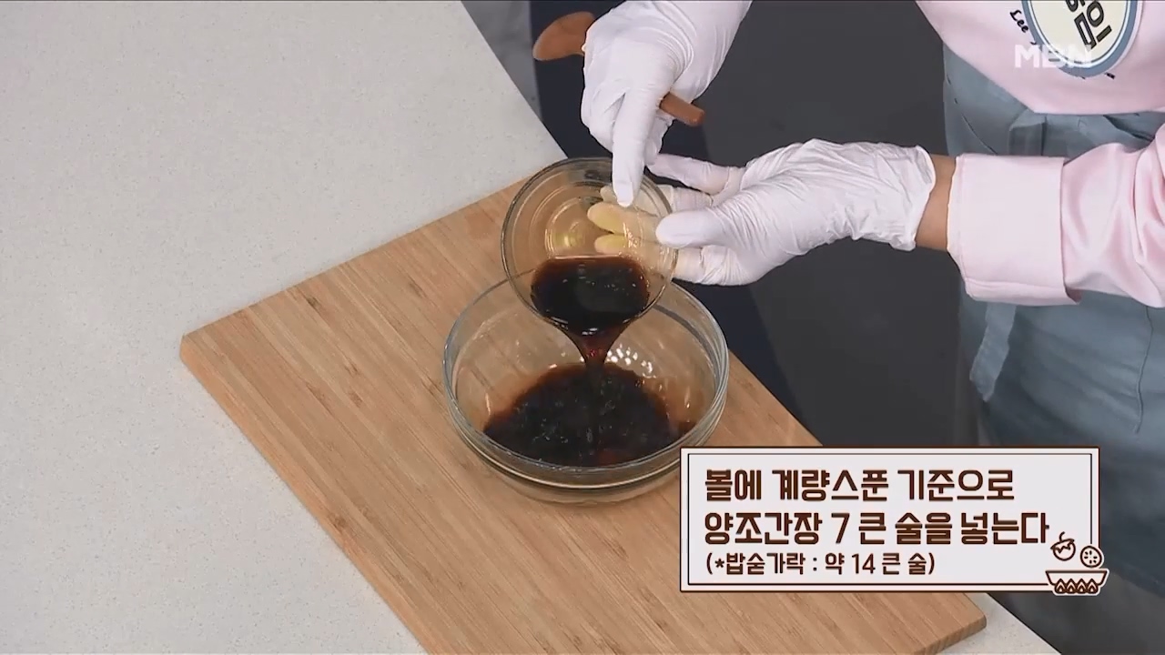 6. 볼에 계량스푼 기준으로 양조간장 7큰술을 넣습니다. (밥숟가락 약 14큰술)