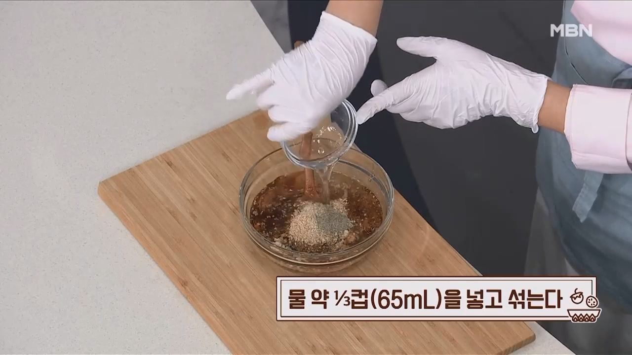 13. 물 약 1/3컵(65mL)을 넣고 잘 섞어 LA갈비 양념을 완성합니다.