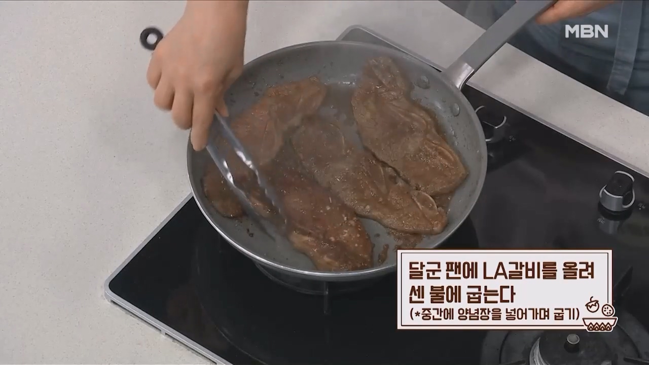 17. 달군 팬에 LA갈비를 올려 센불에 중간중간 양념장을 넣어가며 구워주면 맛있는 LA갈비가 완성됩니다.