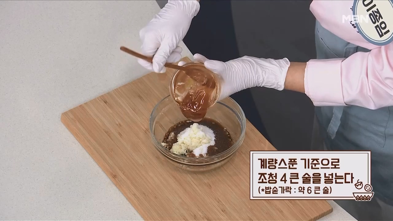 9. 계량스푼 기준으로 조청 4큰술을 넣습니다. (밥숟가락 약 6큰술)