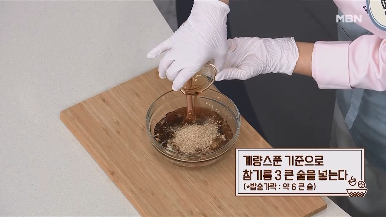 11. 계량스푼 기준으로 참기름 3큰술을 넣습니다. (밥숟가락 약 6큰술)