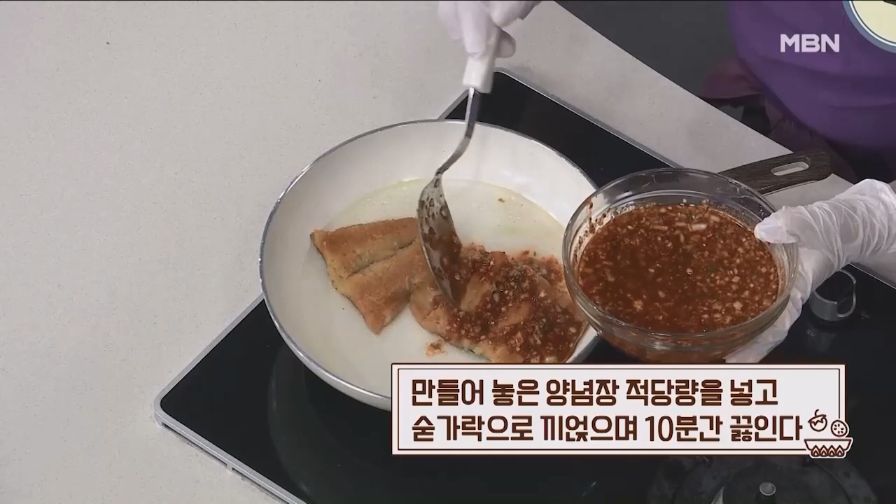 17. 만들어 놓은 양념장 적당량을 넣고 숟가락으로 끼얹으며 10분간 끓여줍니다.