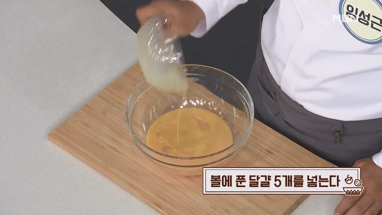 2. 볼에 댤걀 5개를 풀어 넣습니다.