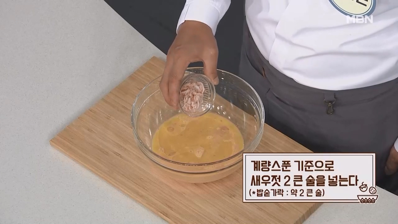 3. 계량스푼 기준으로 새우젓 2큰술을 넣습니다. (밥숟가락 약 2큰술)