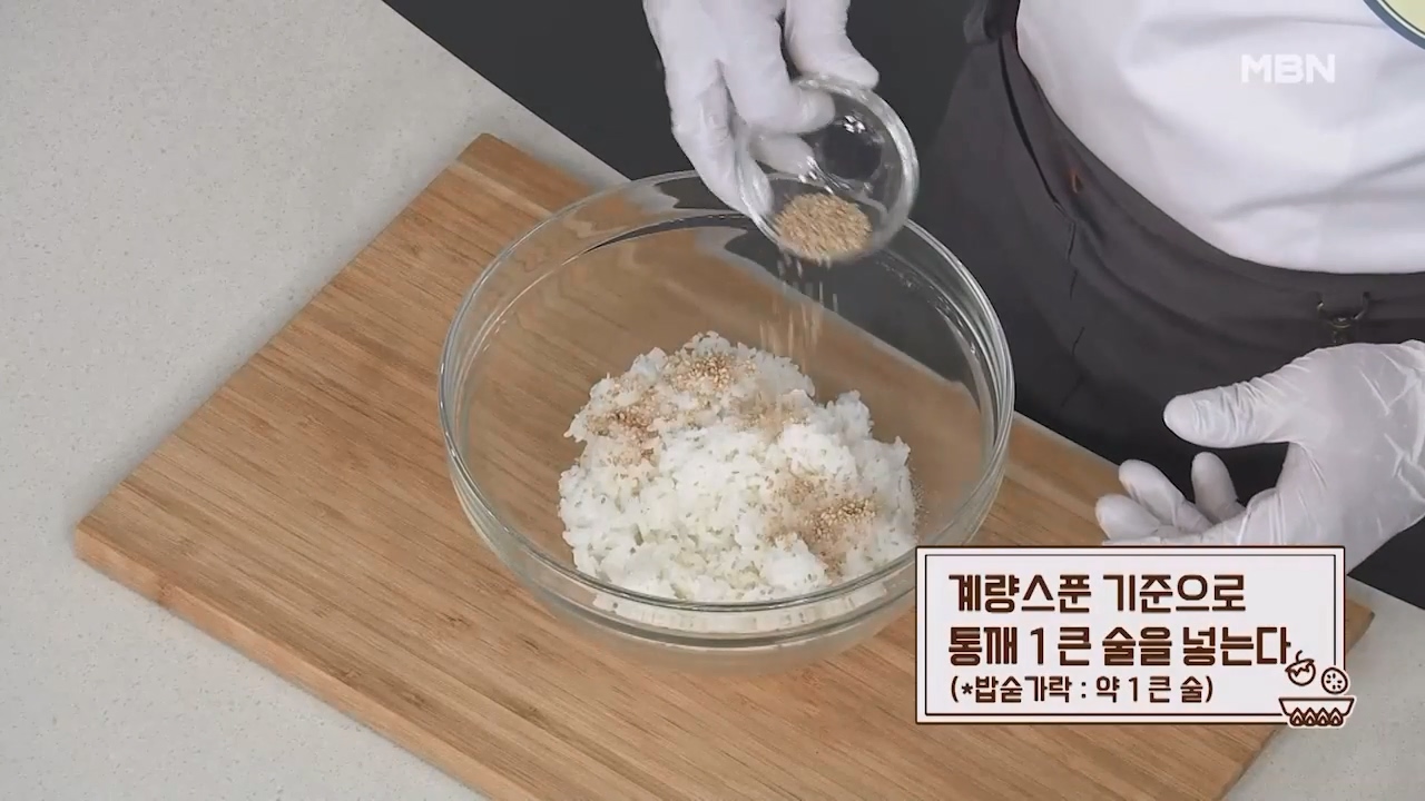 9. 계량스푼 기준으로 밥 2공기에 맛소금 1작은술을 넣습니다. (티스푼 약 1작은술)