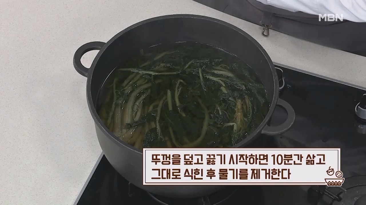 4. 뚜껑을 덮고 끓기 시작하면 10분간 삶고 그대로 식힌 후 시래기 물기를 제거합니다.