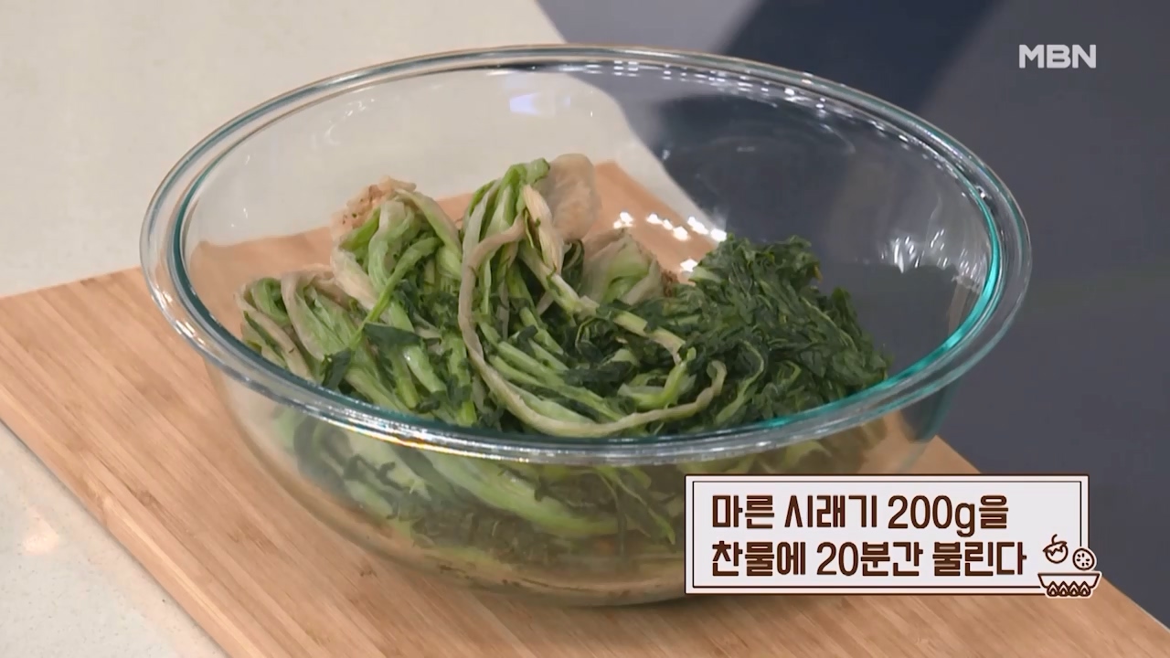 1. 마른 시래기 200g을 찬물에 20분간 불립니다.