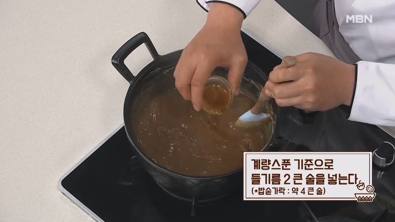 5. 계량스푼 기준으로 들기름 2큰술을 넣어줍니다. (밥숟가락 약 4큰술)