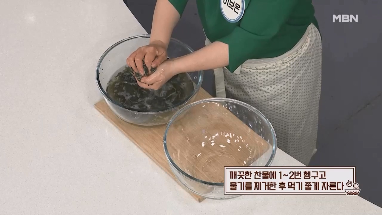 5. 깨끗한 찬물에 1~2번 취나물을 헹구고 물기를 제거한 후 취나물을 먹기 좋게 잘라줍니다.