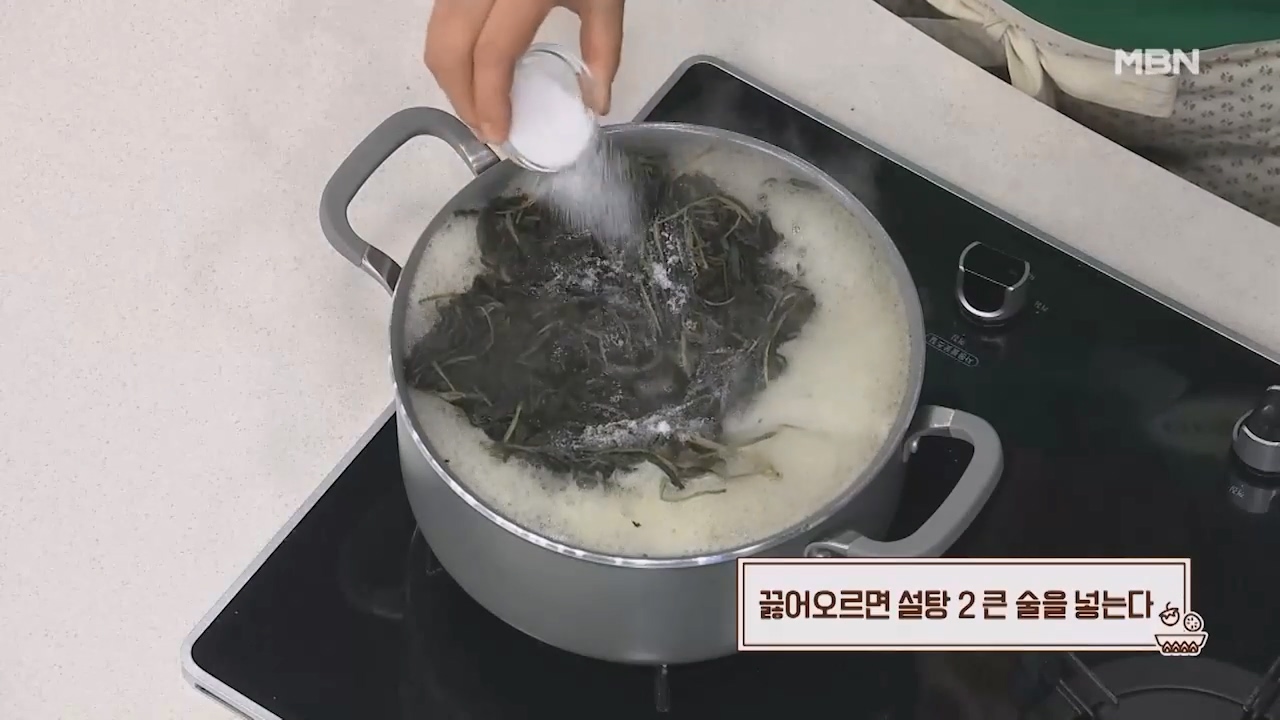 2. 끓어오르면 설탕 2큰술을 넣습니다.