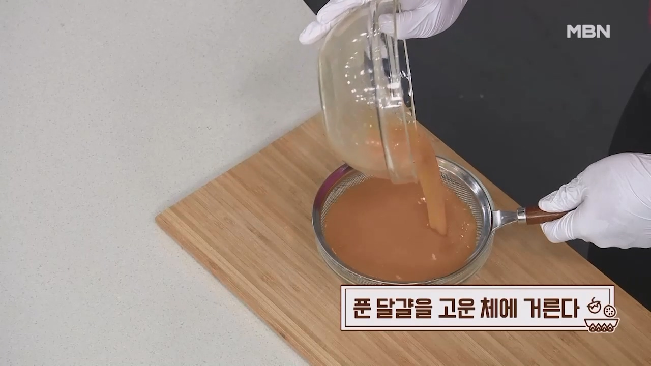 4. 푼 달걀을 고운 체에 걸러줍니다.