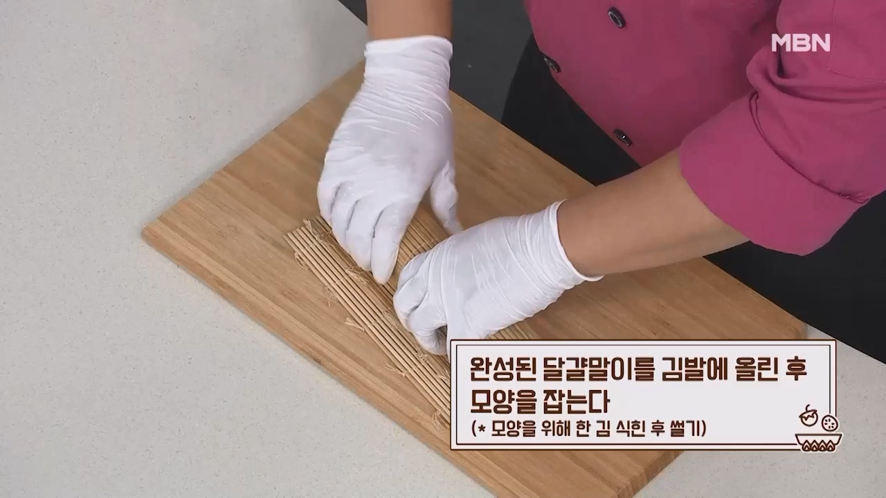 17. 완성된 매생이계란말이를 김발에 올린 후 모양을 잡고 한김 식힌 후 썰어주면 됩니다.